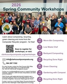 Do you want to jumpstart your knowledge of composting, recycling, green cleaning and sustainable lifestyle habits? The Clark County Composter Recycler program is offering free, in-person spring workshops. 🌱 Learn more and pre-register here: https://clarkcountycomposts.org/workshops WEBSITE:  https://clarkcountycomposts.org and FACEBOOK page: https://www.facebook.com/ComposterRecyclerProgram [Image: ClarkCountyComposts.org] This is not a Garden Cub event, but, we are happy to …