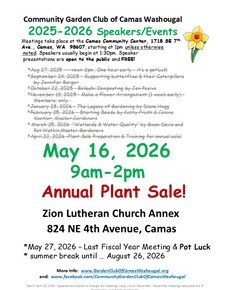 The Community Garden Club of Camas/Washougal‘s General Meeting on April 22, 1-3pm, is all about getting ready for our annual PLANT SALE that happens next month! There is NO SPEAKER at this garden club meeting and it is geared towards club members, not the general public. This preparation and planning meeting is held in our …