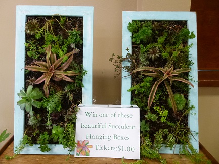 Buy a raffle ticket for $1 and win one of the two large succulent wall hangings (see pix below).