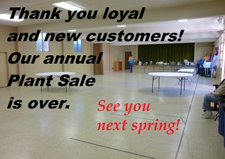 Thank you loyal and new customers. Our annual Plant Sale (May 20, 2017) is over. We hope to see you next spring at our May 2018 sale!