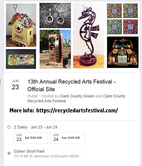 The 13th Annual Recycled Arts Festival takes place THIS WEEKEND in Esther Short Park, in downtown Vancouver, WA, USA.