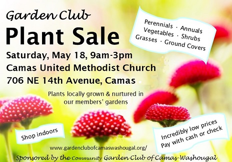 May 18, 2019, 9am-3pm, get top-quality plants at incredibly low prices at the Annual Plant Sale of the “Community Garden Club of Camas Washougal” (CGCCW).