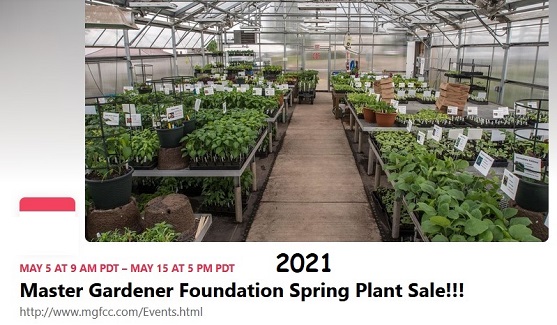 Annual “Master Gardener Foundation” Spring Plant Sale will run from May 5 through May 15, 2021!