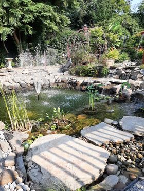 No children, please, as there are a lot of water features. Terrie is happy to answer questions about pond design/building and koi (fish). Here are a few photos Terrie shared.