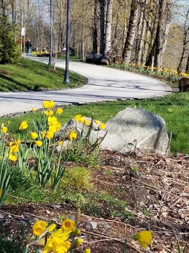 The hardy members of the Community Garden Club of Camas/Washougal completed planting 750 more daffodil bulbs at the Washougal Waterfront Park and trailhead at 56 S. 1st, Washougal, Washington last weekend.