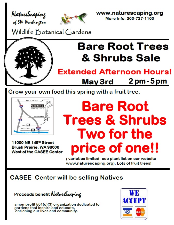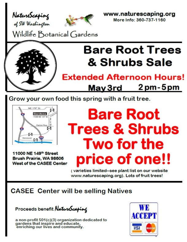 Bare root trees will be 2 for 1!! Help them find homes for their remaining trees, help the environment, help add some beauty to your property, help support NatureScaping with this fundraising event. They’ll help you get some great trees at great deals!