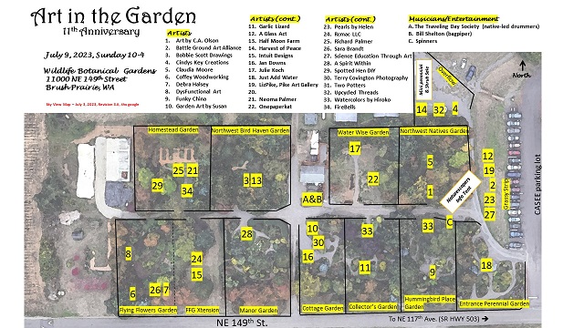 TODAY, 10am-4pm, July 9th the 11th Anniversary of “Art in the garden” takes place in Brush Prairie, WA.
