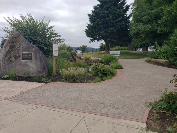 The Community Garden Club’s decades of service in Parker’s Landing Historical Park ended in 1999 with a granite plaque placed in the grass near the garden volunteers’ garden shed and a dogwood was planted nearby. The expressions of gratitude to the club was most likely initiated by Rosalee MacRae, park advocate and founder who was also a Community Garden Club member. Rosalee served as the Parkersville Site Development Committee Secretary, continuing her service as a Parkersville National Historic Site Advisory Committee to the Port member until her passing.