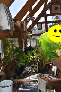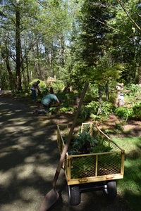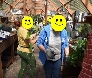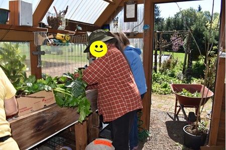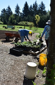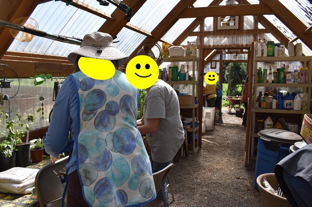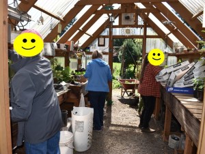 Some pix of just one of our “digs” where we potted up plants from member’s gardens for our upcoming annual plant sale.